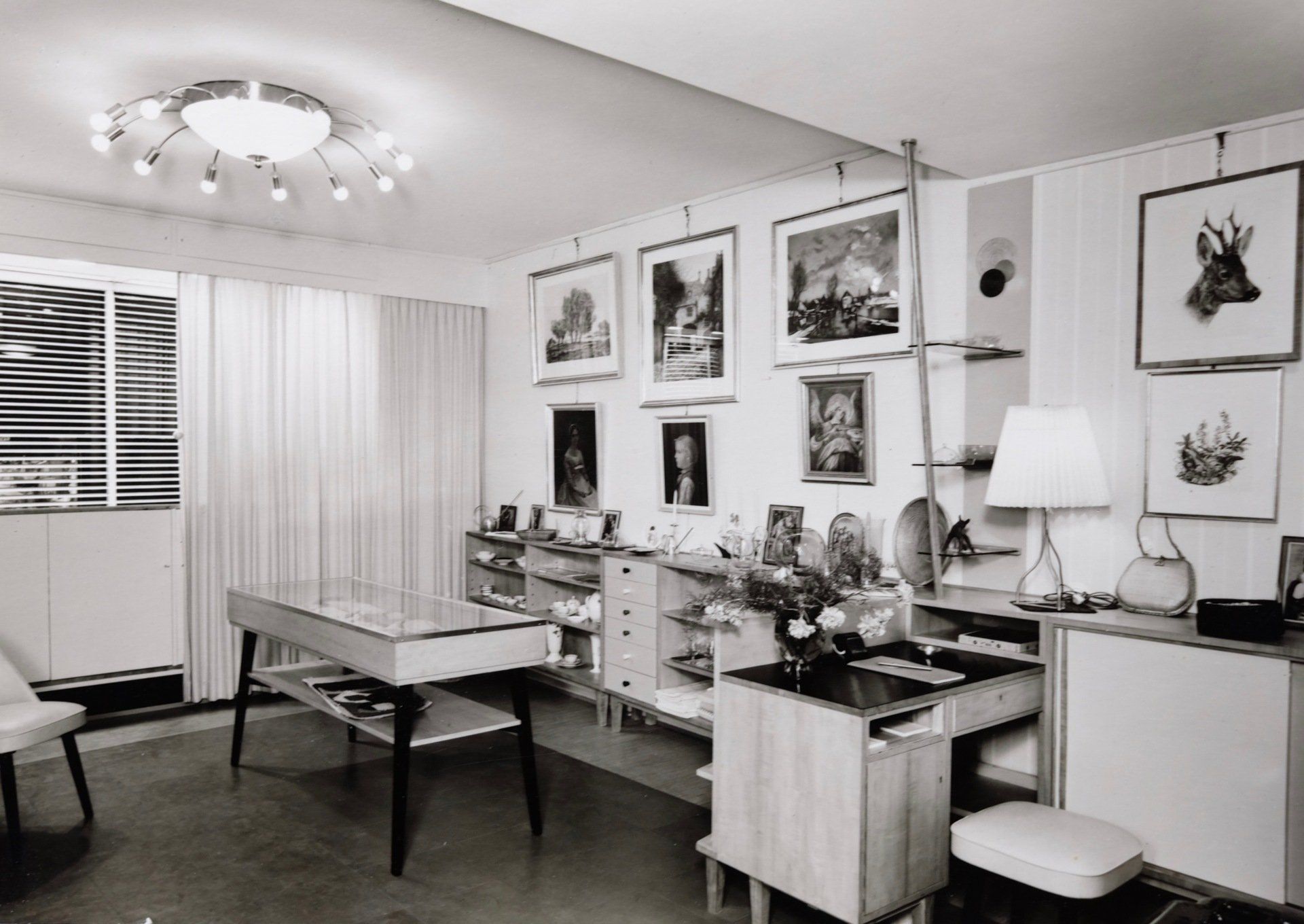 Auf der einen Seite des Geschäftes wurde anspruchsvolle und dekorative Kunst präsentiert und es fand dort die Beratung für die Bildeinrahmung statt.